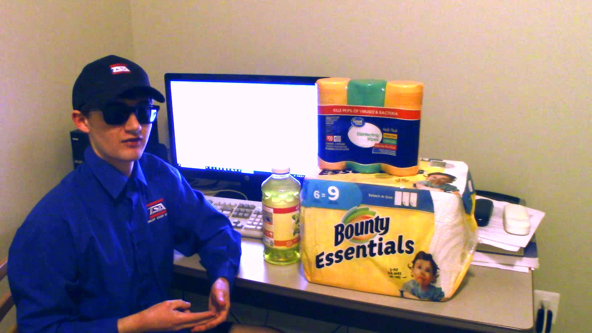 As President of my high school's Technology Student Association (TSA) club, I wanted to make a community service project where all the members of the club could participate and help out, so I contacted a local homeless shelter and asked if there was any way we could help. I was given a list of cleaning supplies which they needed, and my club went to work with obtaining these items. This included creating commercials advertising the drive in the school's daily video announcements (the picture to the right is a screenshot from one of these commercials), decorating and placing boxes around the school for collecting the items, and ultimately delivering the items to the shelter. I initiated the drive and orchestrated these different activities, and ultimately we were able to help out our local community!